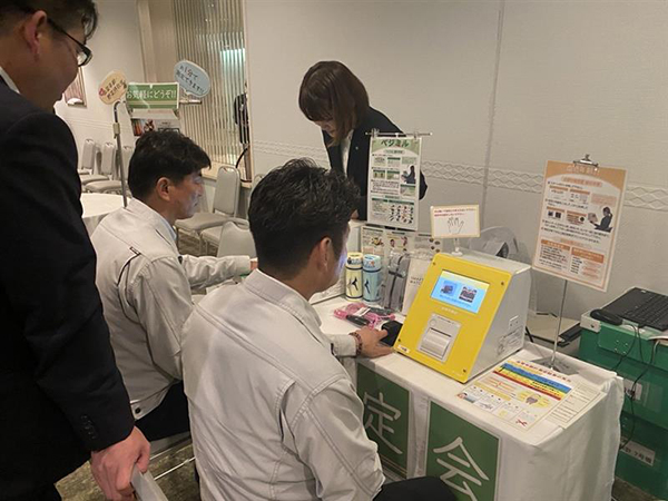 2024年6月に、協力会社の皆様も多く参加する安全大会(東京・大阪)において、健康度を簡単にチェックできる「血管年齢」と「野菜摂取量」の測定会を実施いたしました。この測定会は、参加者の皆様に自身の健康状態を客観的に把握していただき、今後の健康管理(生活習慣病予防)に役立てていただくことを目的としています。