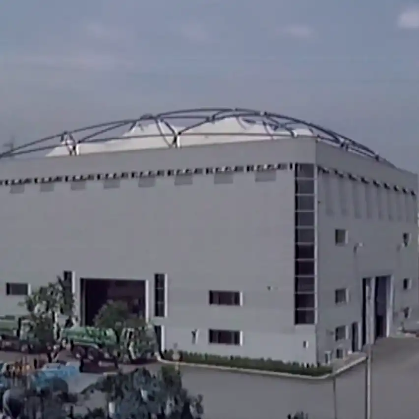 この研究所の大きな特徴は、建物自体が実証の場となっていたことでした。構造実験棟には、膜構造の「コクド・ゆとりど~む」を採用。自然光を潤沢に取り込む巨大空間は、建築研究室による居住環境の計測対象であると同時に、構造研究室が実大レベルの実験を行うためのフィールドでもありました。内部には5,000トンメートルの能力を持つ反力壁を備え、ここで30階建てRC造の実現に向けたデータの蓄積が行われました。また、管理棟には当時開発された「免震工法」を導入。地下の免震装置が建物の揺れを抑え、居住性向上と精密機器の保護を実現するとともに、常時地震観測を行う検証の場としての役割も担っていました。